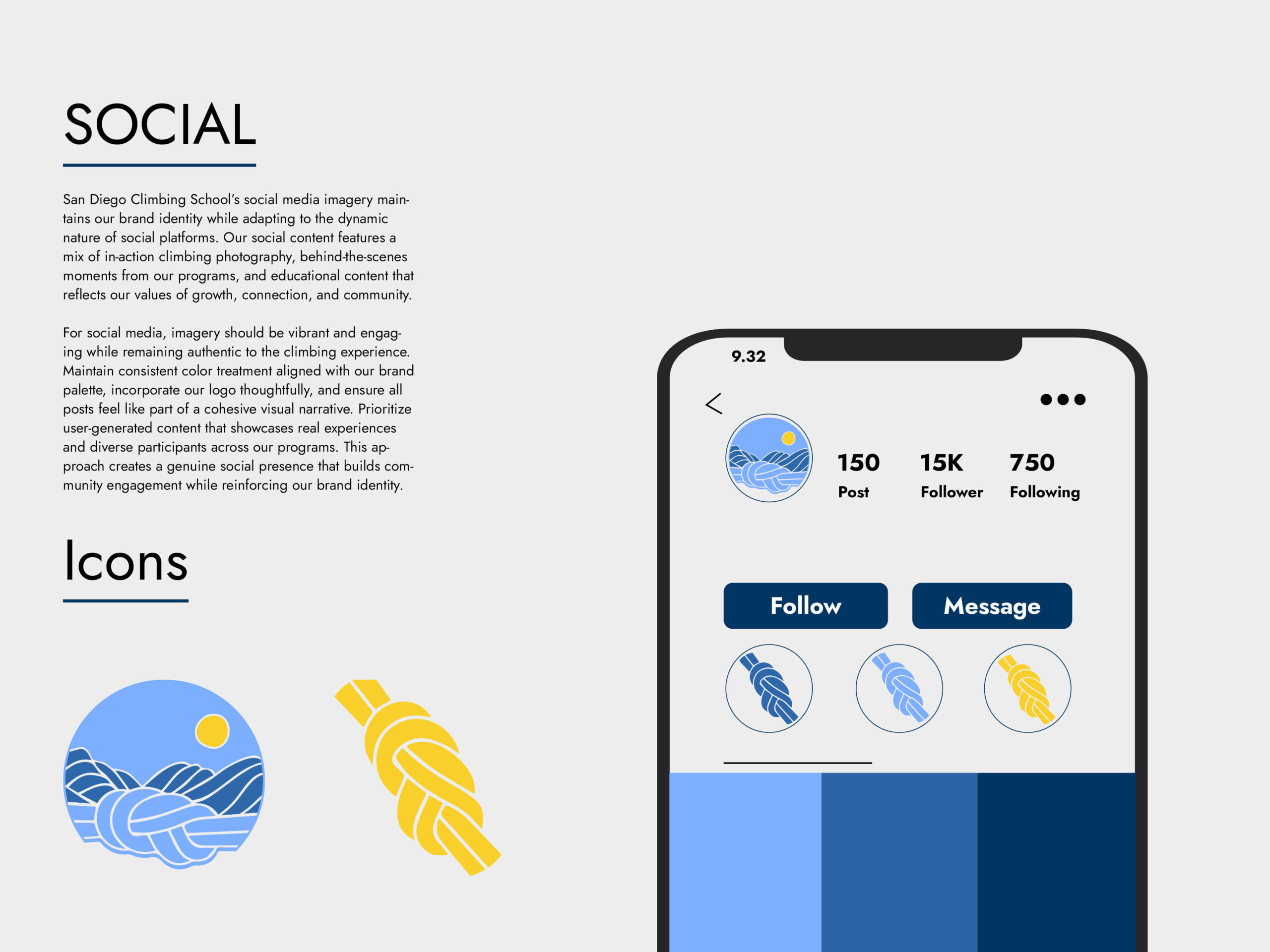In February of last year, I had the opportunity to work with San Diego Climbing School on a comprehensive brand identity project, and it quickly became one of those collaborations that feels deeply aligned. SDCS has a strong ethos rooted in connection, education, and community, and my goal was to create a visual system that reflected those values while honoring San Diego’s unique climbing landscape. From the Flemish bend knot symbolizing trust and technical expertise to the skyline silhouette inspired by Mission Gorge and The Wedge, every element was thoughtfully designed to feel grounded, approachable, and enduring. I loved translating their mission into a cohesive brand that supports both their instructional work and their growing community, and I’m genuinely proud to have this project represented in my portfolio.